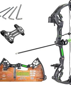 - The Complete Package – This compact set includes a quiver, 3 finger rollers, 2 fiberglass arrows, a pin sight, an arrow rest, and an arm guard for safe practice.